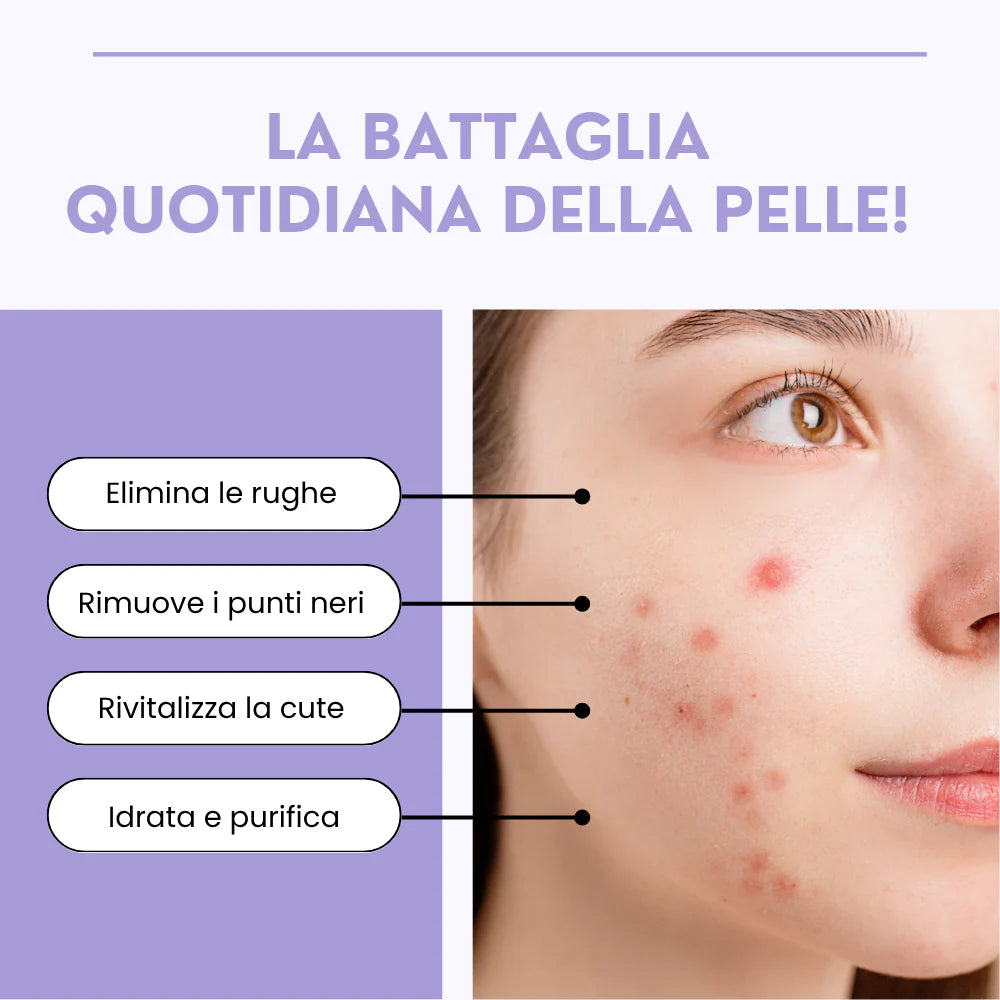 Il risultato è una pelle più tonica, ossigenata e rigenerata, con una significativa riduzione di infiammazioni, rughe e imperfezioni cutanee, senza danneggiare i tessuti superficiali.